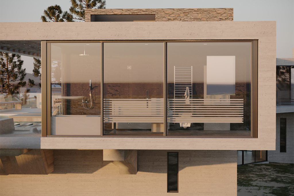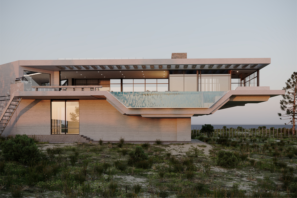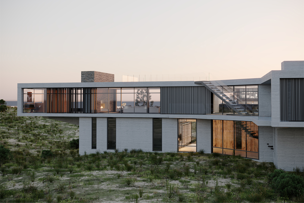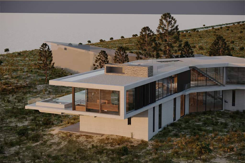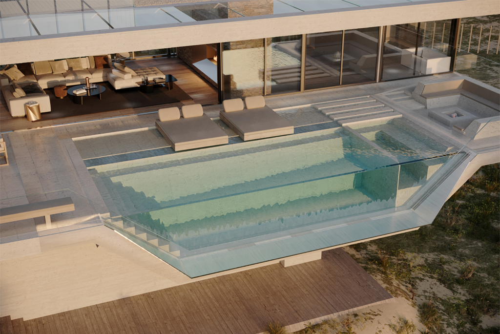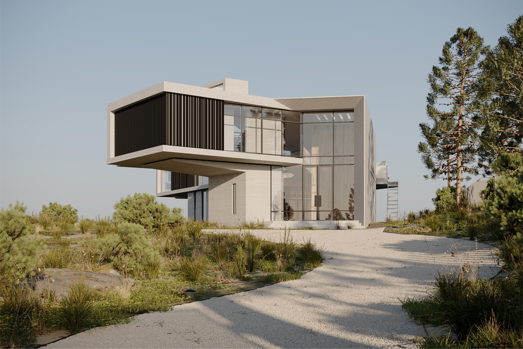 Architectural Integrity: Using exposed concrete and stone, Beach Plum combines rugged materials with refined design, with cantilevered features that emphasize innovative engineering.