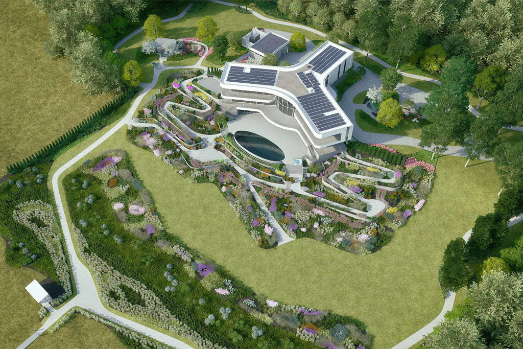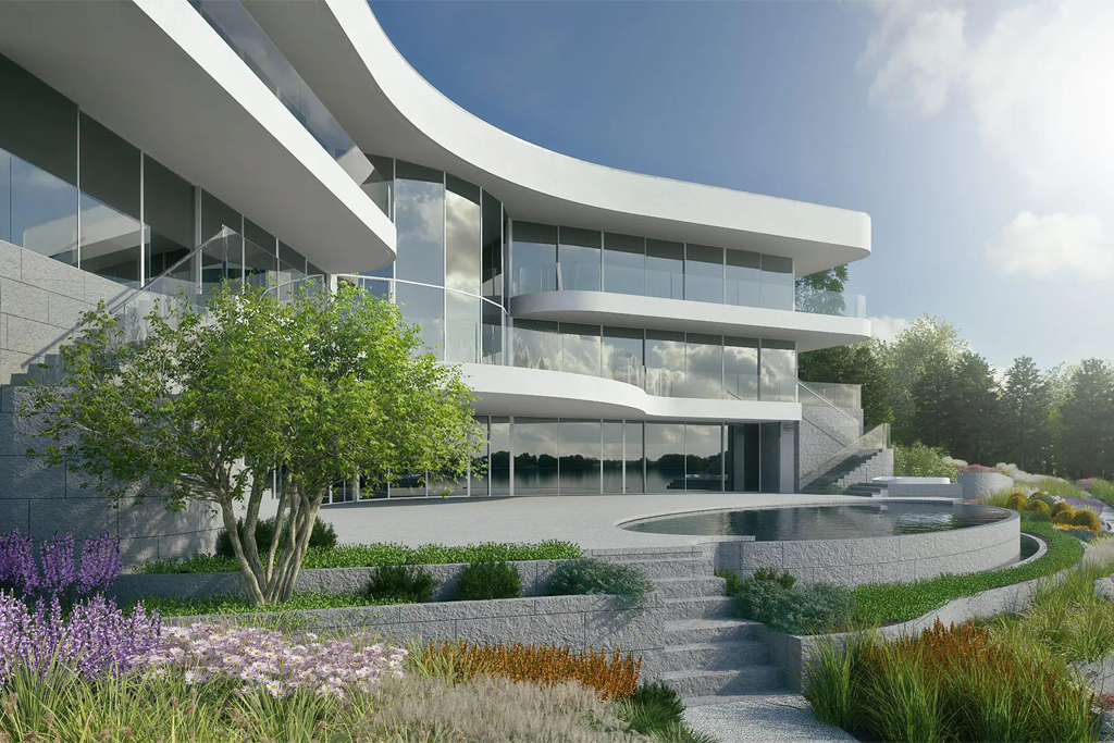 Innovative Layout: A propeller-shaped layout aligns three levels with bay views, with outdoor terraces on each level, extending the indoor spaces into the natural landscape.