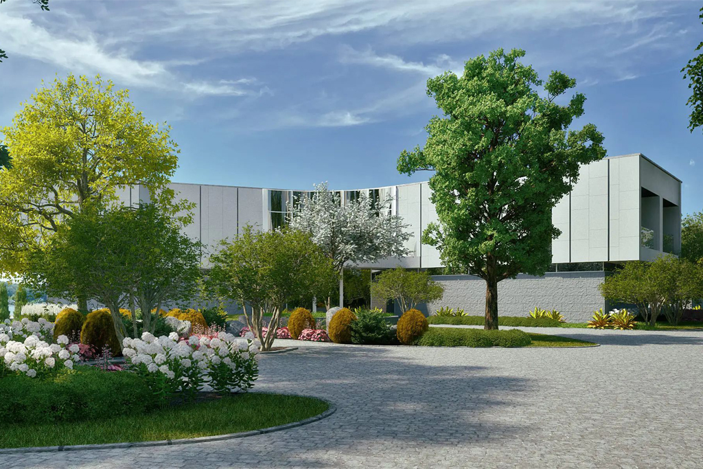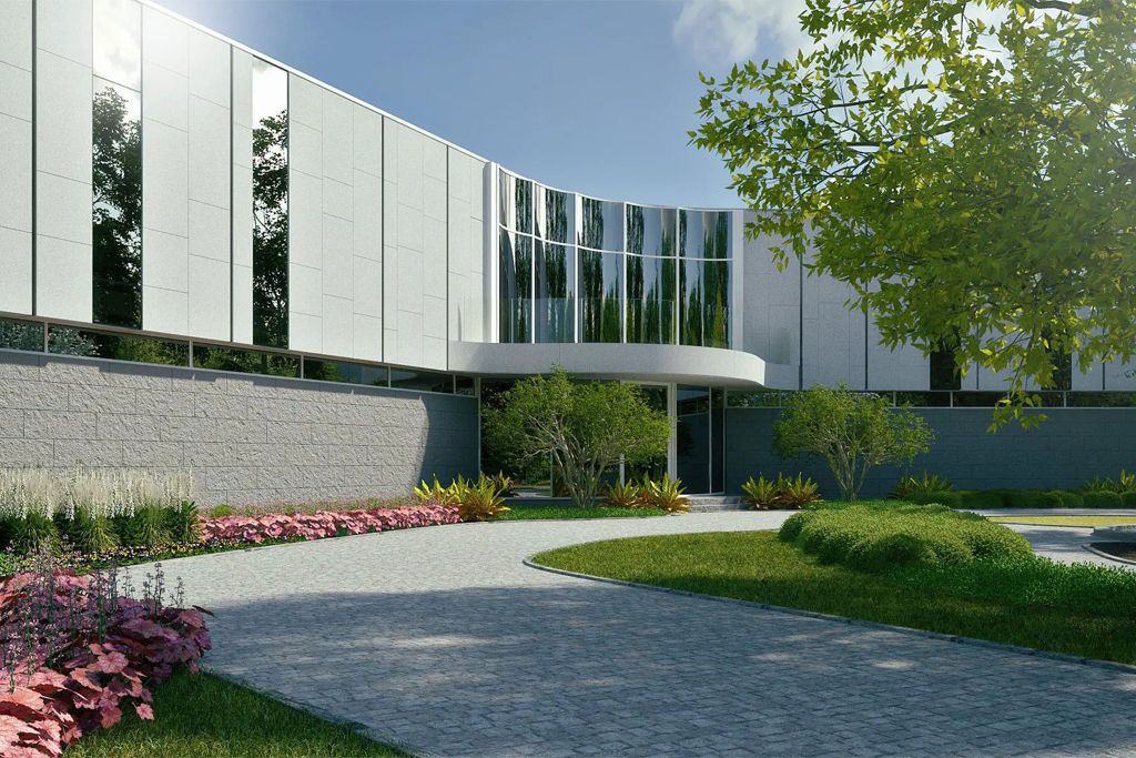 Central Gathering Space: Anchored by a two-story living room, the home’s layout includes a private south wing and a kitchen/family room in the north wing, with guest suites and technical spaces on the lower level.